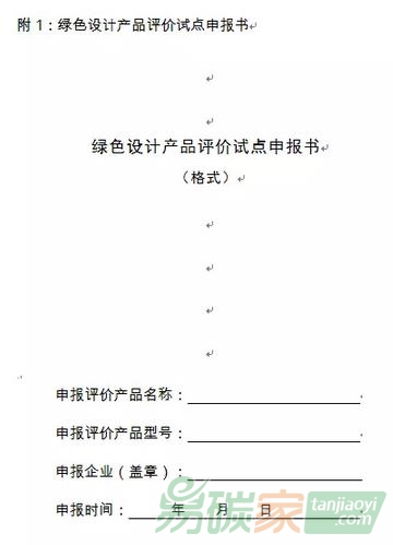 (1)綠色設(shè)計(jì)產(chǎn)品評(píng)價(jià)試點(diǎn)申報(bào)書(shū)(見(jiàn)附1);