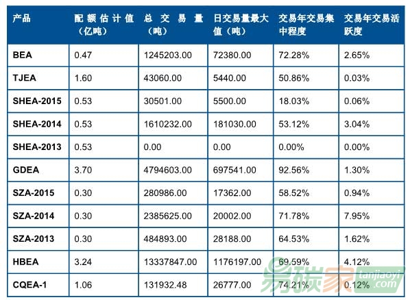 碳排放配額總量合計約12億噸。根據(jù)7個試點(diǎn)交易所公布的數(shù)據(jù),7個試點(diǎn)2015年度碳市場交易總量約6600萬噸,其中,