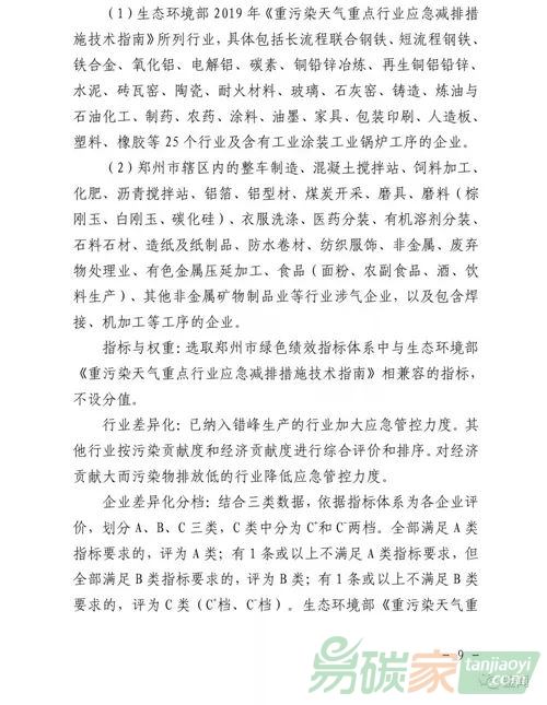 為科學(xué)、精準(zhǔn)地對工業(yè)企業(yè)開展大氣污染治理分類管控,實現(xiàn)全市環(huán)境空氣質(zhì)量目標(biāo),加速推進(jìn)工業(yè)轉(zhuǎn)型升級和綠色發(fā)展,7月31日,鄭州市環(huán)境污染防治攻堅戰(zhàn)領(lǐng)導(dǎo)小組印發(fā)《鄭州市工業(yè)企業(yè)綠色績效評價與分類管理實施方案(試行)》。