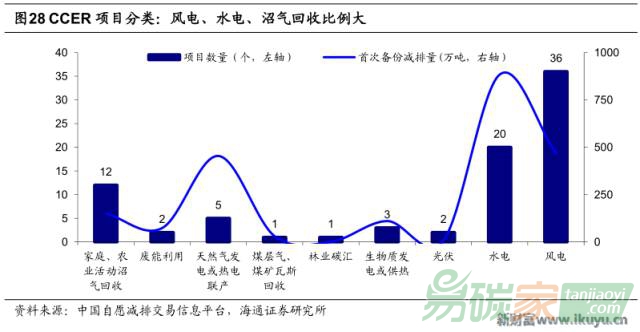 碳匯、生物質(zhì)發(fā)電供熱、光伏、水電和風(fēng)電,其中達(dá)風(fēng)電、水電、沼氣回收項(xiàng)目最多,分別達(dá)36、20和和12個(gè)。