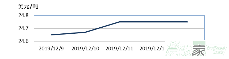 2019年12月09日至2019年12月13日,新西蘭碳市場價格在24.65-24.75美元/噸之間波動。