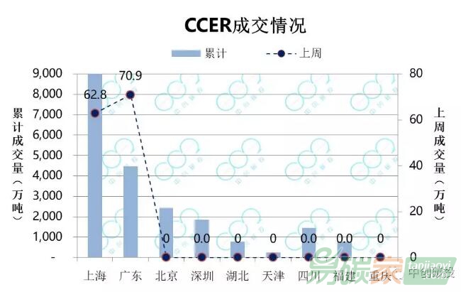 累計交易情況:截至2020年2月21日,全國CCER累計成交2.11億噸,各地交易量差異較大,其中,上海CCER累計成交量持續(xù)領(lǐng)跑,達(dá)9246萬噸,占比44%;廣東CCER累計成交量近4500萬噸,排名第二,占比21%;北京、深圳和
