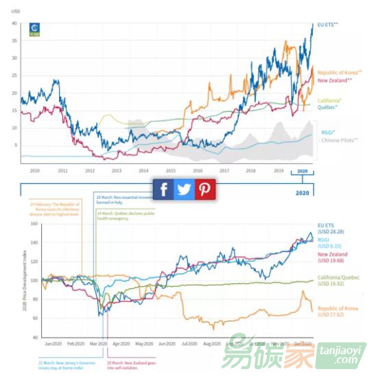 碳市場再次受到?jīng)_擊。幸運的是,看來這次會有所不同。我們看到了明顯的跡象,表明新冠疫情的經(jīng)濟(jì)影響不會長期拖累碳市場的有效性。在歐盟,2020年底的碳價比年初高出45%;在新西蘭增長了41%;北美區(qū)域上漲了43%,而美國加州和加拿大魁北克的碳市場價格恢復(fù)到疫情大流行前的水平。