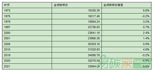 表1:全球碳排放總量(百萬噸)及同比增速