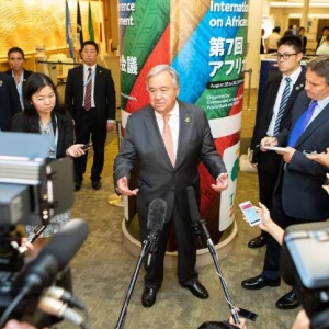 聯(lián)合國秘書長古特雷斯在日本橫濱舉行的第七屆東京非洲發(fā)展國際會(huì)議(TICAD)上向媒體發(fā)表講話 聯(lián)合國秘書長古特雷斯正在日本橫濱參加第七屆“東京非洲發(fā)展國際會(huì)議”,并出席了有關(guān)氣候變化和減少災(zāi)害風(fēng)險(xiǎn)問題的會(huì)議 ... ...