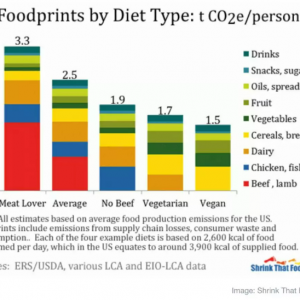 根據(jù) Shrink That Footprint機構匯總數(shù)據(jù)制作的圖表,不同食物攝入習慣的人每年平均碳排放數(shù)據(jù)如下:——喜歡吃肉的人(Meat lover):3.3噸二氧化碳/年/人——一般人(Average):2.5噸二氧化碳/年/人——不吃牛肉 ... ...
