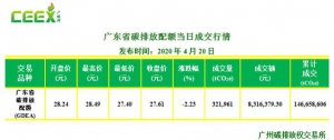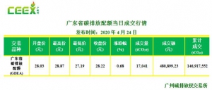 • 【每日碳情】廣東省碳排放配額4月20日成交行情