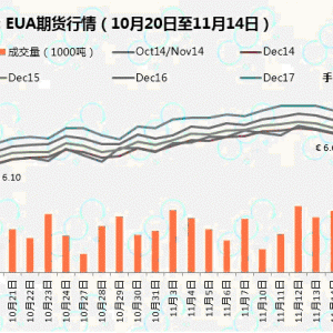 1. EUA10月20日至11月14日,歐盟碳配額(EUA)價(jià)格震蕩上行。歐洲能源交易所(EEX)的EUA現(xiàn)貨價(jià)格從10月20日的6.1歐元/噸開始連續(xù)上漲,最高上漲到11月12日的6.83歐元/噸,該價(jià)格是3月11日以來即最近八個(gè)多月的最高 ...